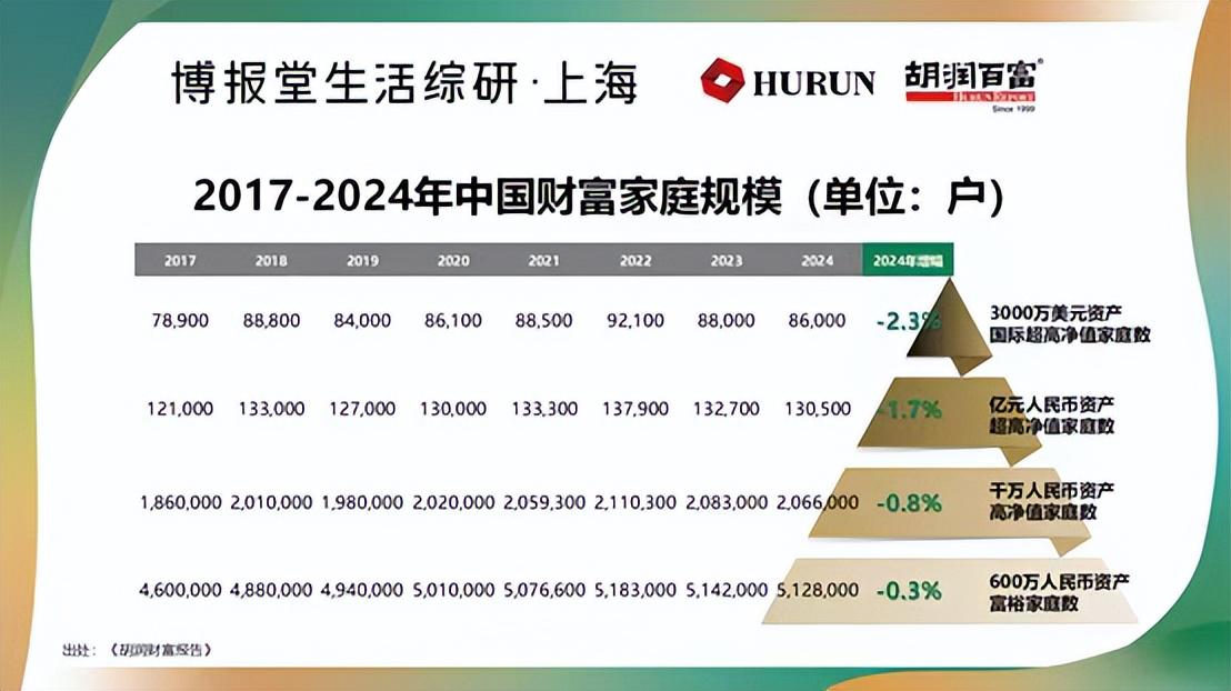 根据胡润发布的2024年富裕家庭数量,有500万之多,看起来很多,其实这已经是自2019年以来的再次下滑了。