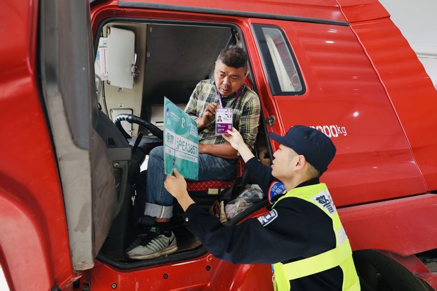 据悉,自第八届进博会布展启动以来,远端安检点已安检超500辆次货车,累计查获了打火机、尖锐金属物、棍棒等违禁品150余件。“我们始终坚持管理有温度,对一些货车运输途中常备但禁止带入国家会展中心的物品,会实行统一登记、暂时保管,并明确告知驾驶员可在运输完毕后返回领取。”韩尉说。